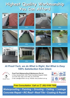 ✆ (65) 6100 7558   ✉  sales@prooftech.com.sg  Waterproofing • Painting • Grouting • Ceiling • Leakage